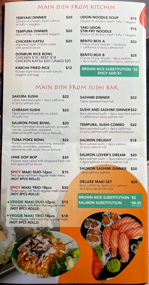 Sakura Sushi Japanese Restaurant - Pickering Menu